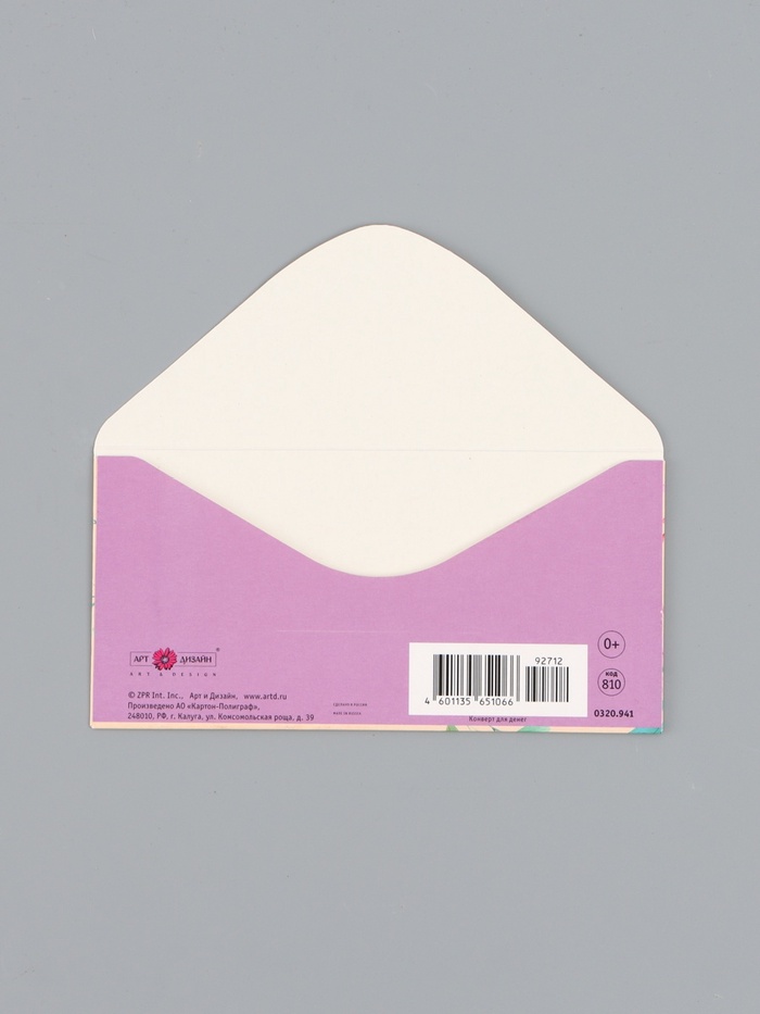 Конверт для денег «С днём рождения», цветы на сиреневом, 16,5 х 8 см