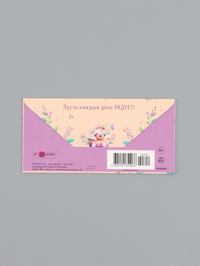 Конверт для денег «С днём рождения», капкейк, 16,5 х 8 см — Характеристики