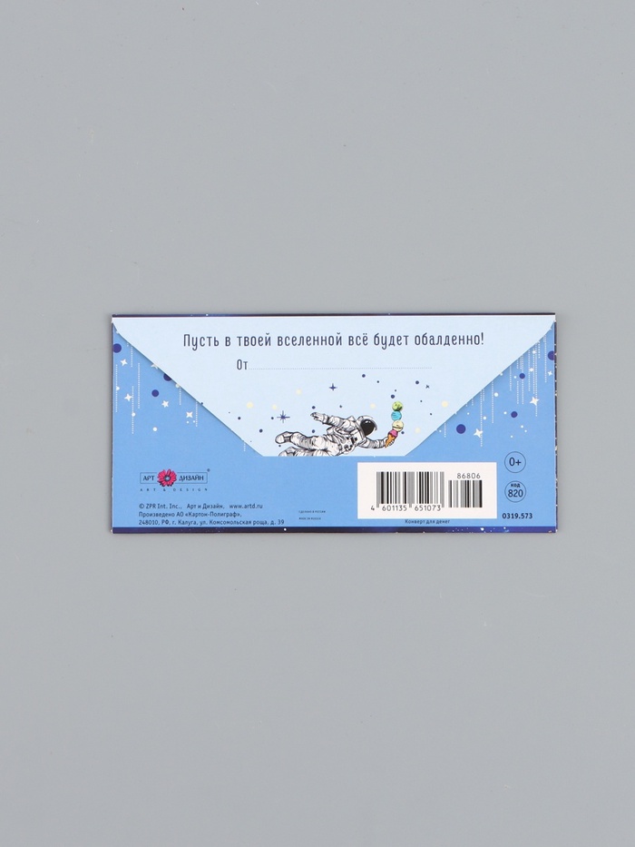 Конверт для денег «С днём рождения», космонавт, 16,5 х 8 см — Характеристики