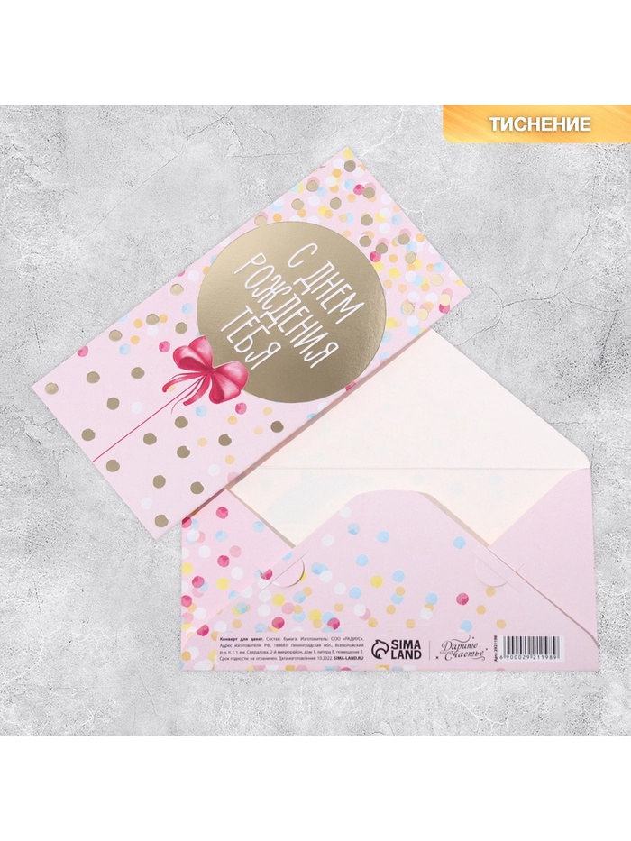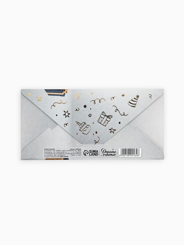 Конверт для денег «С днём рождения», мужской, тиснение, 16.5×8 см — Характеристики