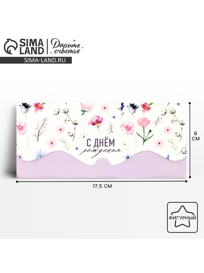 Конверт для денег фигурный «С Днём Рождения!» цветочная композиция, 17.5×8 см