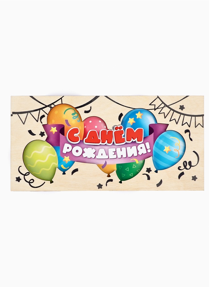 Конверт для денег деревянный «С днём рождения», шары, 16.5×8 см