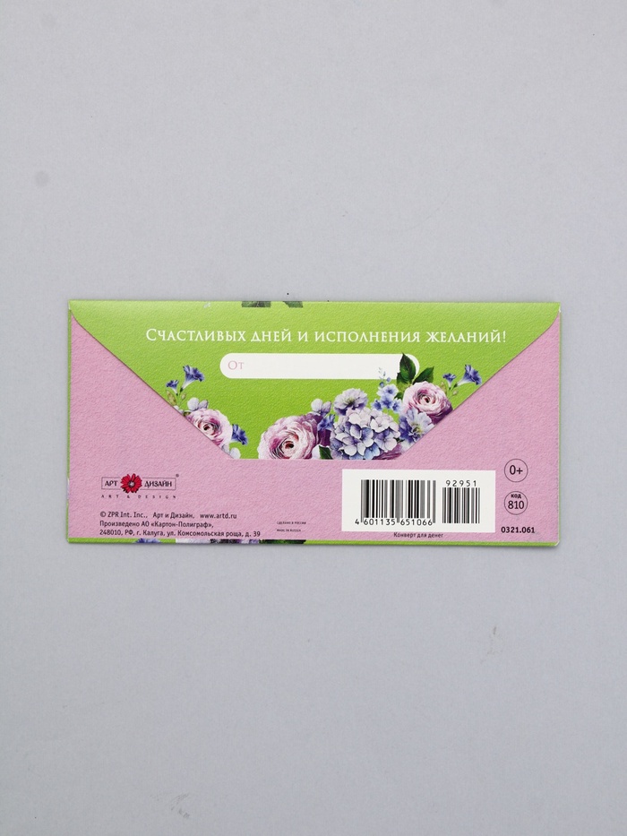 Конверт для денег «С днём рождения», на ярком, 16,5 х 8 см — Характеристики
