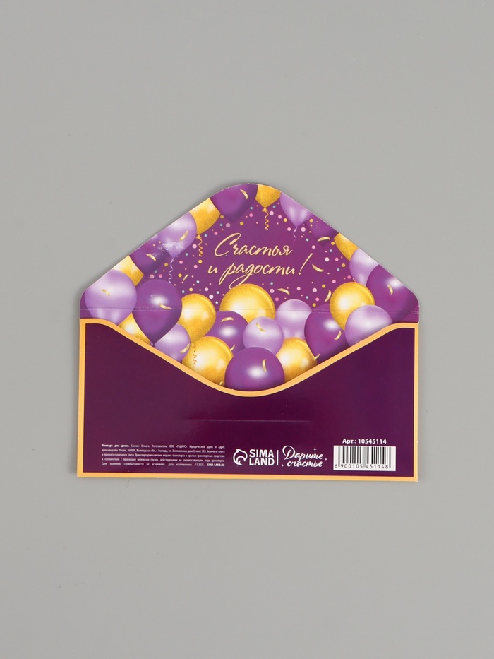 Конверт для денег «С днём рождения!», подарки и шарики, двусторонний, 16,5 x 8 см — Характеристики