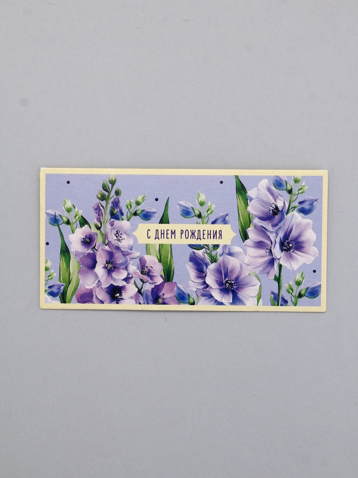 Конверт для денег «С Днем Рождения», бежевый и сиреневый, 16,5 х 8 см