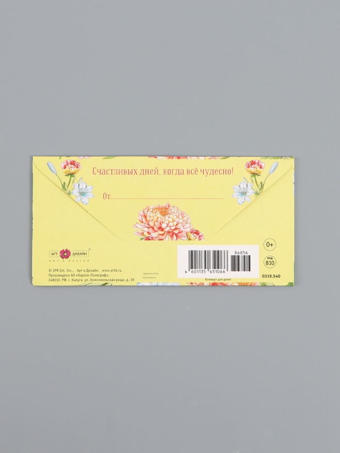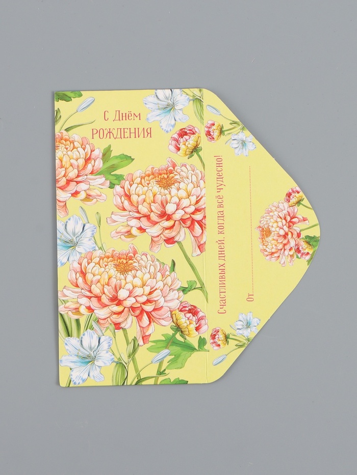 Конверт для денег «С днём рождения», цветочки на жёлтом, 16,5 х 8 см — Характеристики