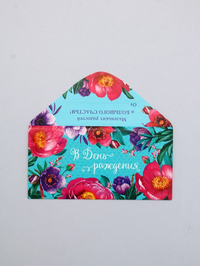 Конверт для денег «С днём рождения», цветы на бирюзовом, 16,5 х 8 см — Характеристики