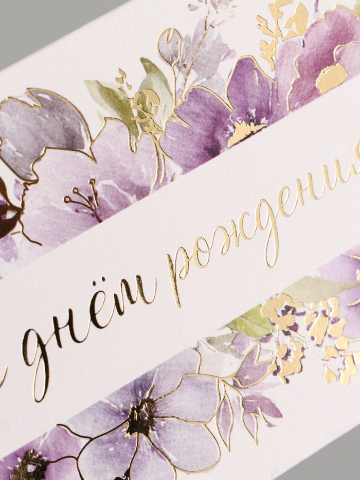 Конверт для денег «С днём рождения», цветы, тиснение, 16.5×8 см — Характеристики