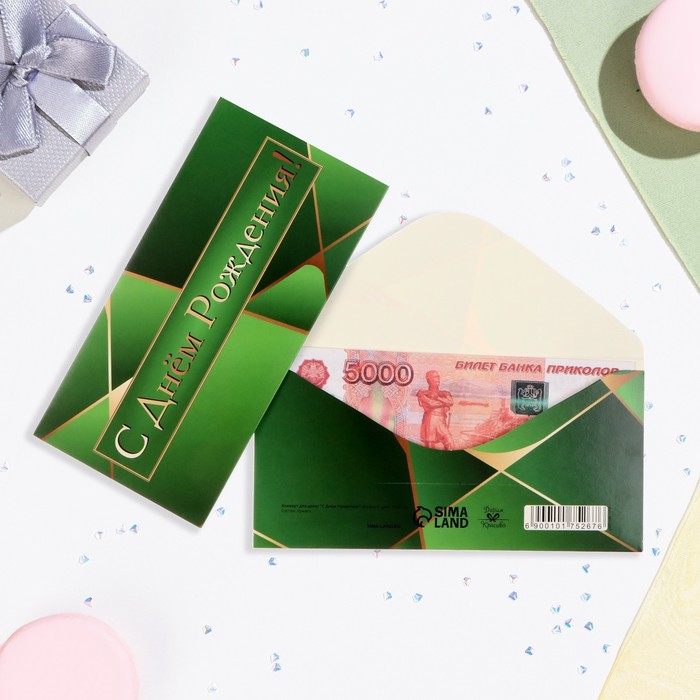 Конверт для денег «С Днём Рождения!» зелёный, 16×8 см — Характеристики
