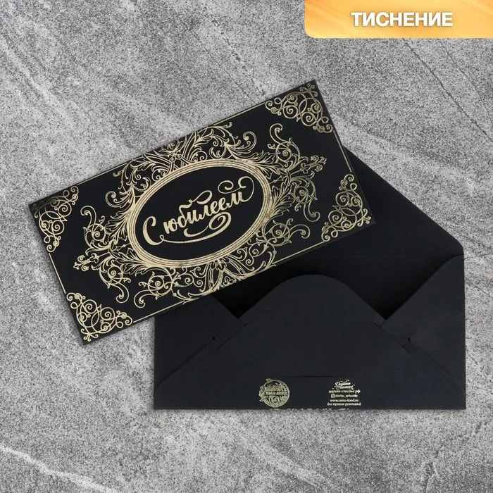 Конверт для денег «С Юбилеем», на черном крафте, тиснение, 16,5 х 8 см — Характеристики