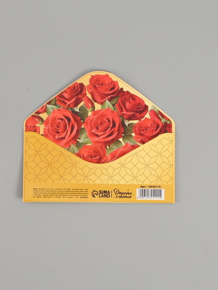 Конверт для денег «С юбилеем!», розы, двусторонний, 16,5 x 8 см — Характеристики