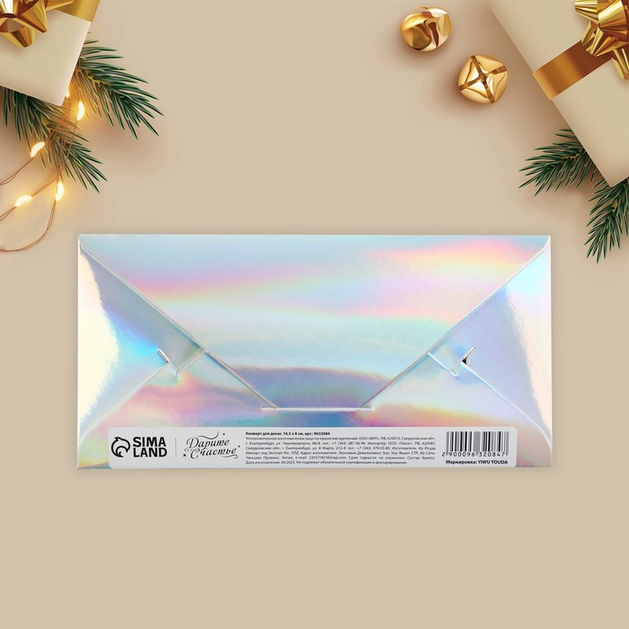 Конверт для денег «С Новым годом», голография, 16,5 х 8 см