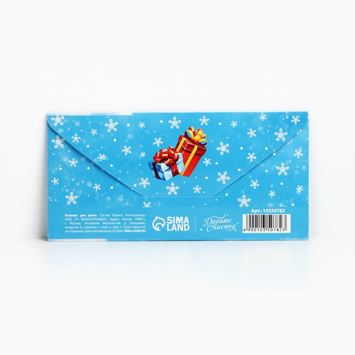 Конверт для денег «С новым годом», голубой, 16.5×8 см — Характеристики