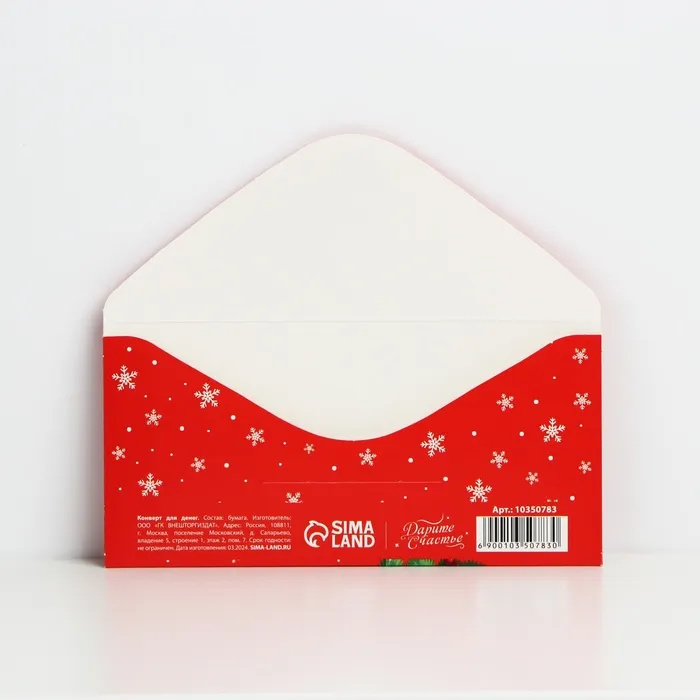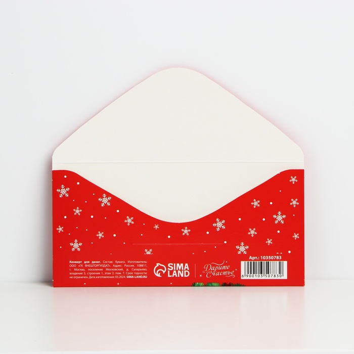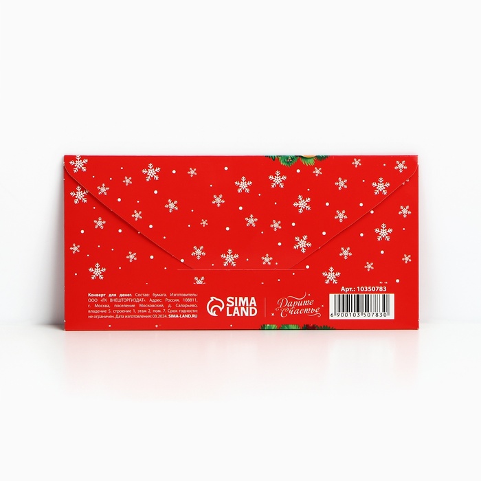 Конверт для денег «С новым годом», красный, 16.5×8 см — Характеристики