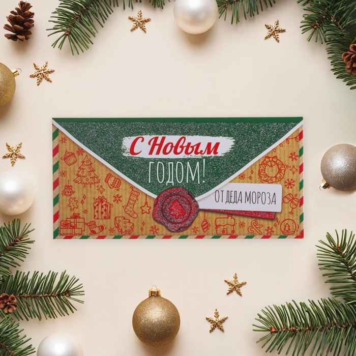 Конверт для денег «С Новым Годом! От Деда Мороза» глиттер, 17×8 см — Характеристики