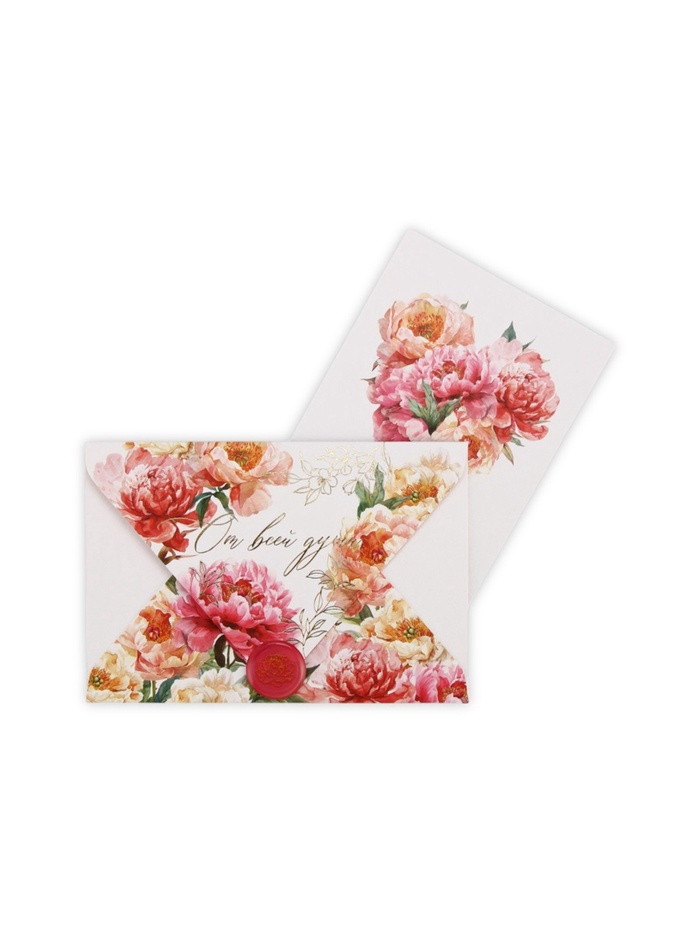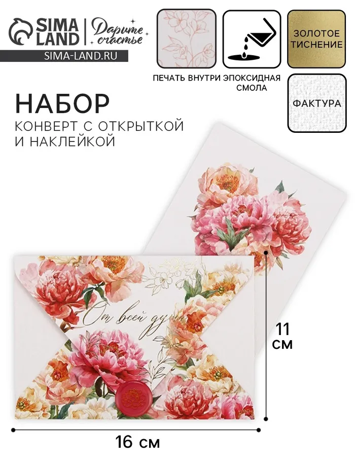 Конверт для денег с открыткой и наклейкой «От всей души», тиснение, акварельный картон, 16 х 11 см — Характеристики