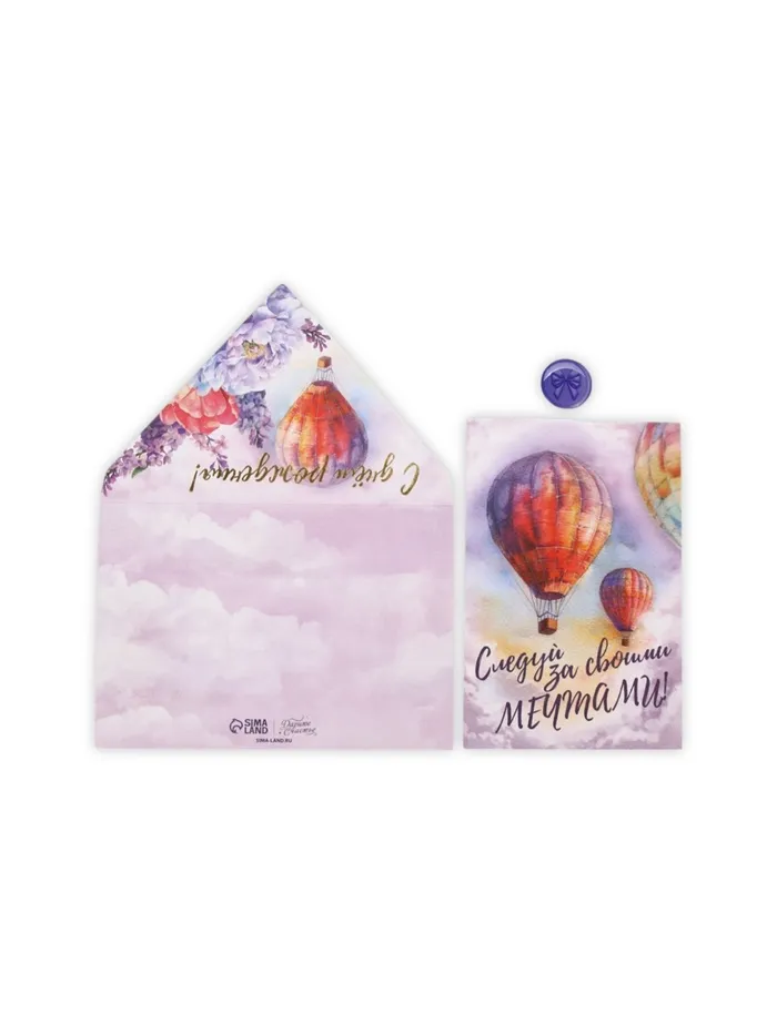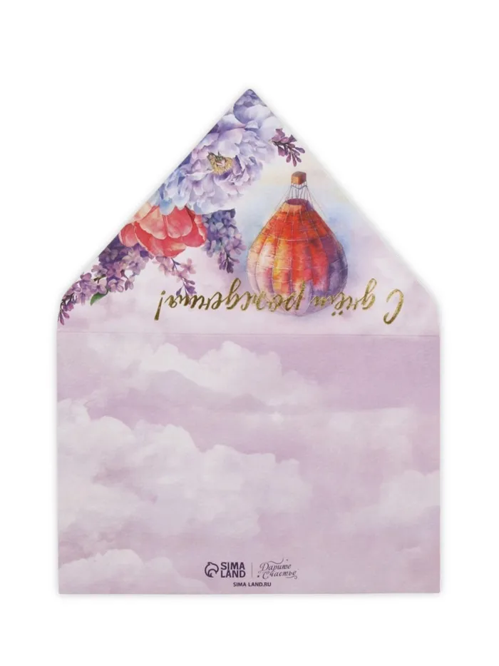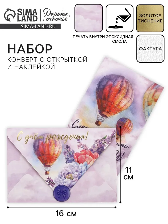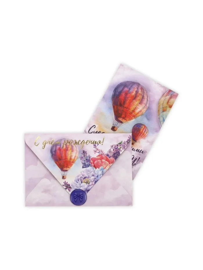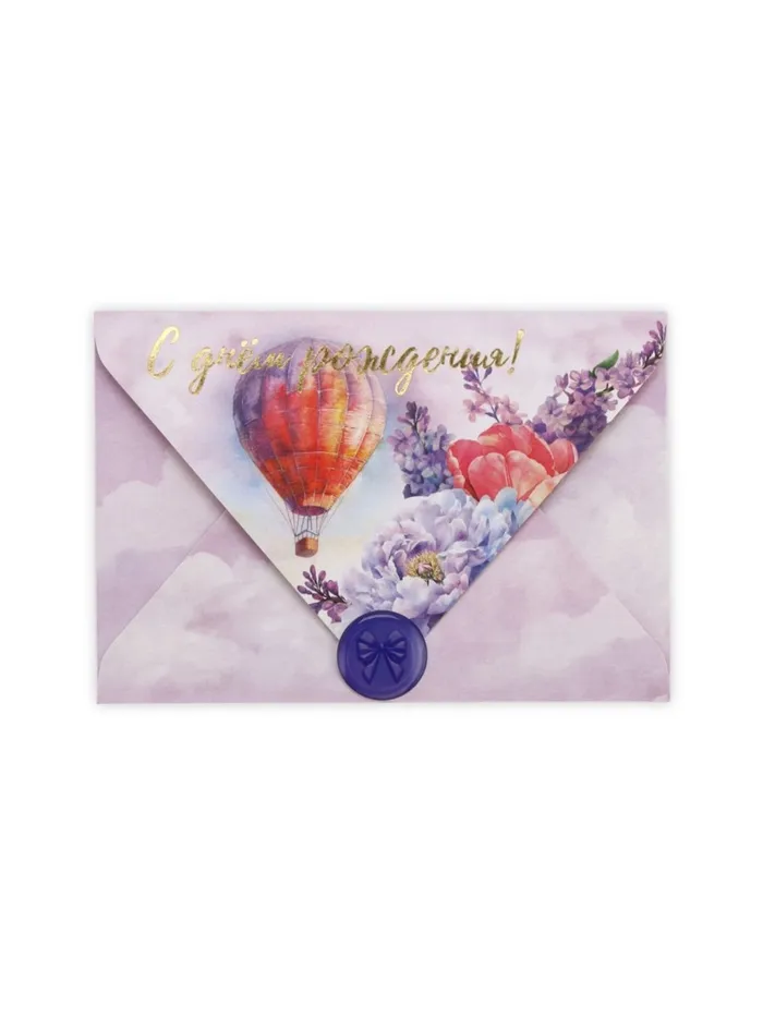 Конверт для денег с открыткой и наклейкой «С днём рождения!», тиснение, акварельный картон, 16 х 11 см — Характеристики