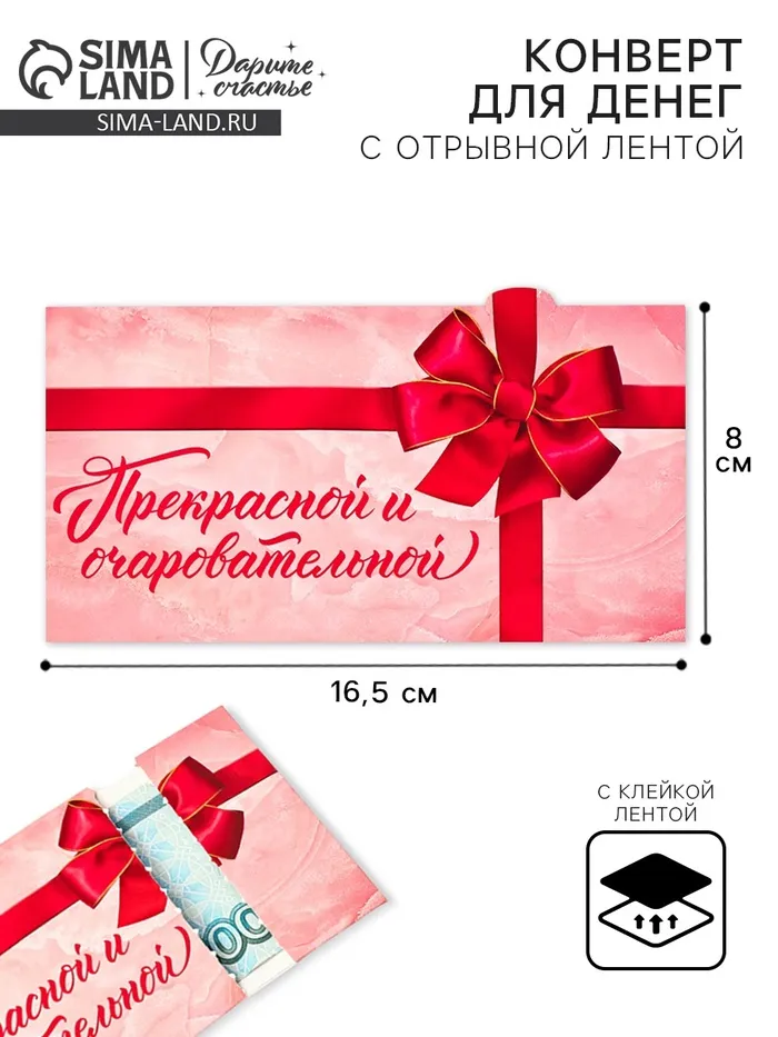 Конверт для денег с отрывной лентой «Прекрасной», 16.5 х 8 см — Характеристики