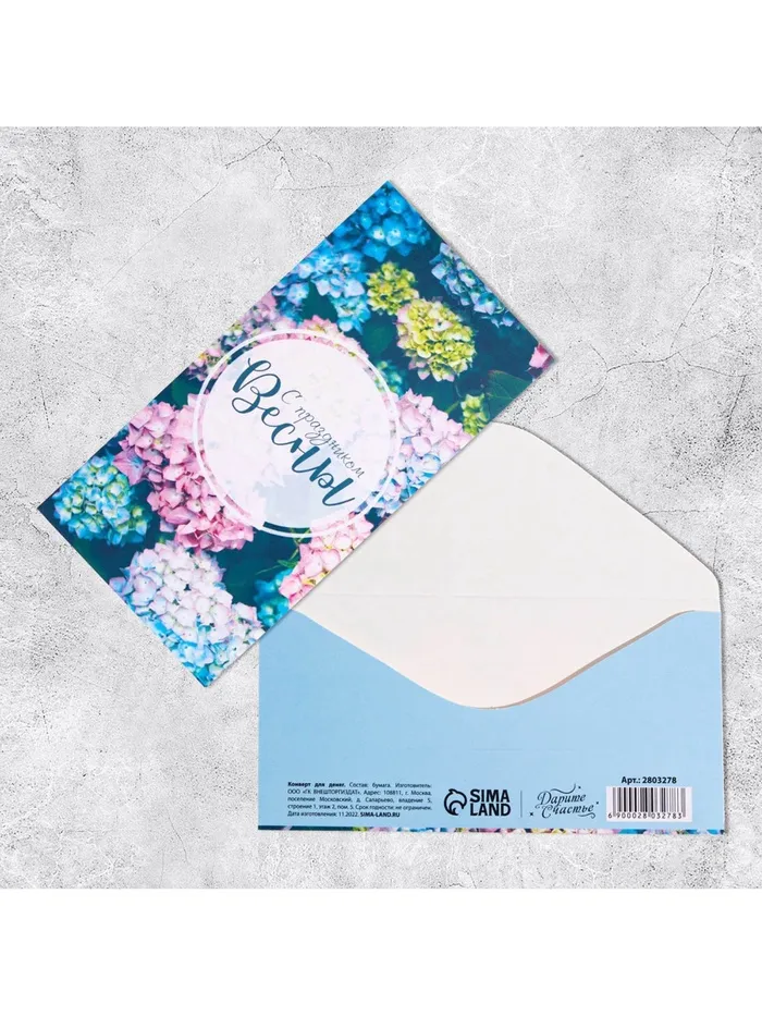 Конверт для денег «С праздником весны», 16.5×8 см — Характеристики