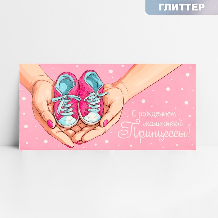 Конверт для денег «С рождением принцессы», глиттер, 16.5 х 8 см — Характеристики