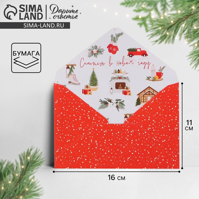 Конверт для денег фигурный «Счастливый Новый год», 17.5×9 см