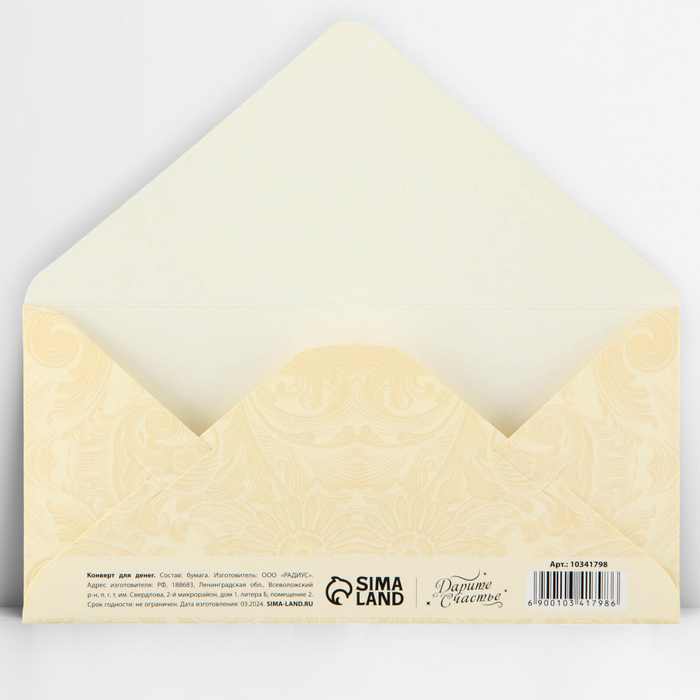 Конверт для денег «Семейного счастья», тиснение, 16.5×8 см — Характеристики