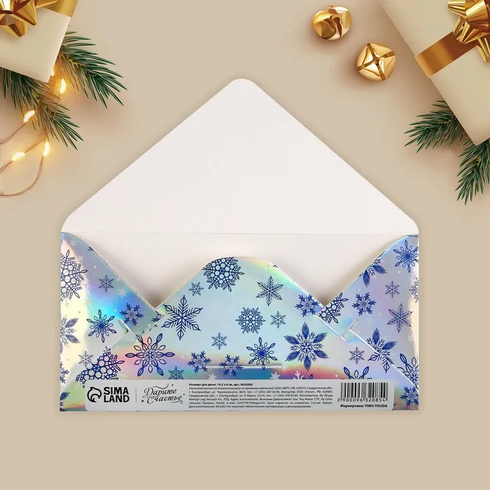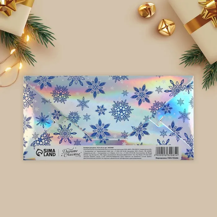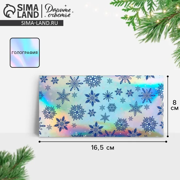Конверт для денег «Снежинки», голография, 16,5 х 8 см — Характеристики