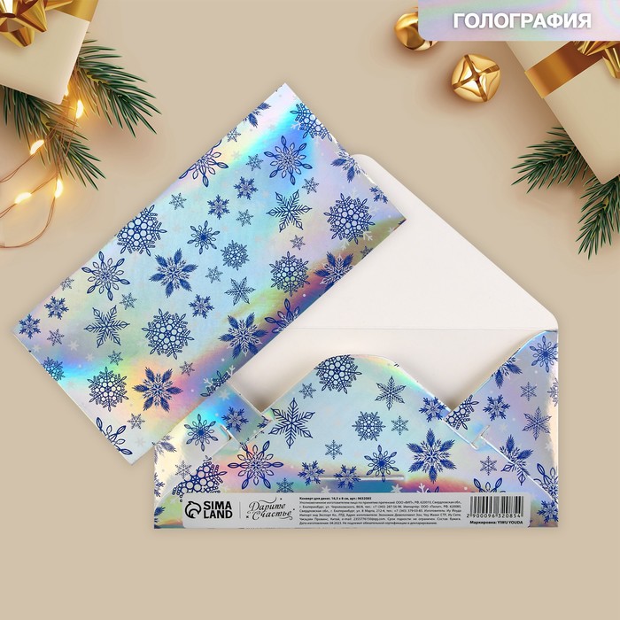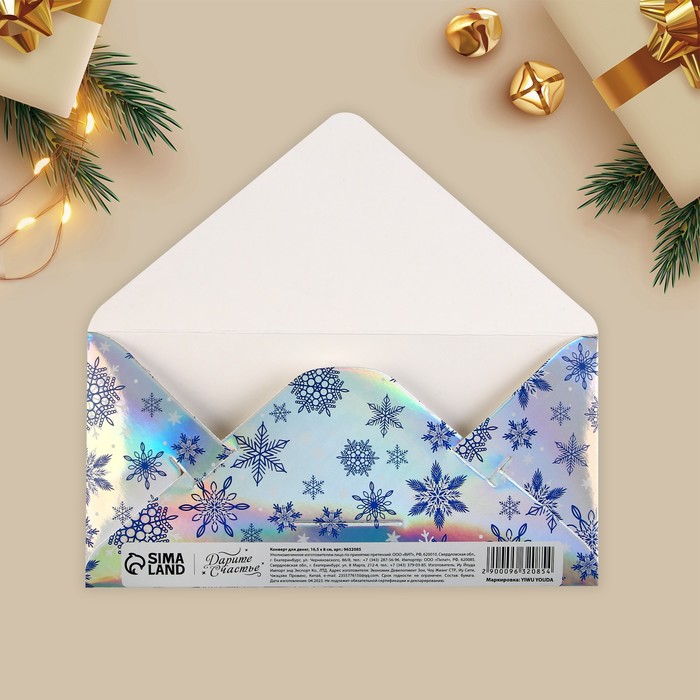 Конверт для денег «Снежинки», голография, 16,5 х 8 см