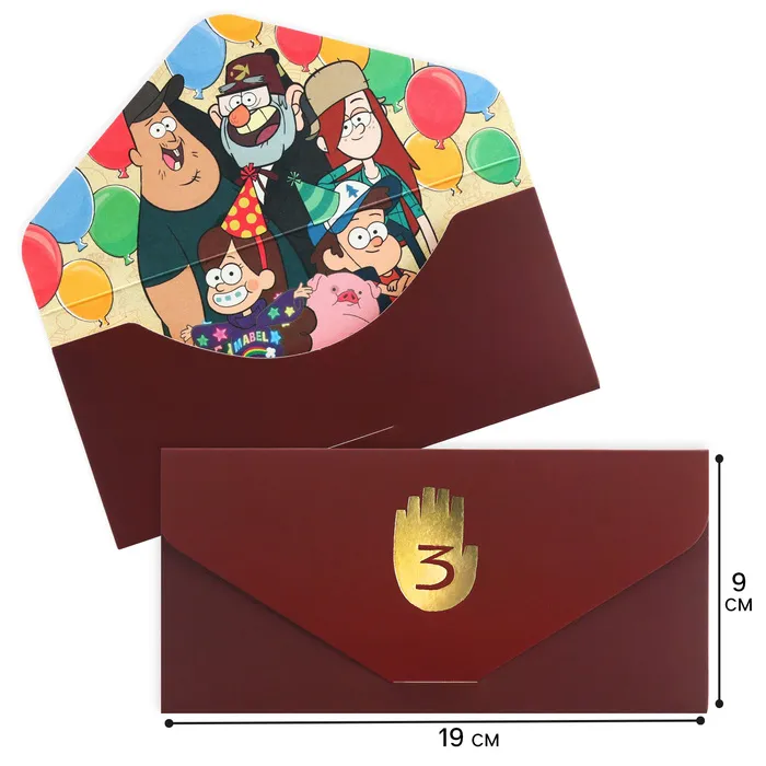 Конверт для денег, софт тач, тиснение, 19 х 9 см, Гравити Фолз — Характеристики