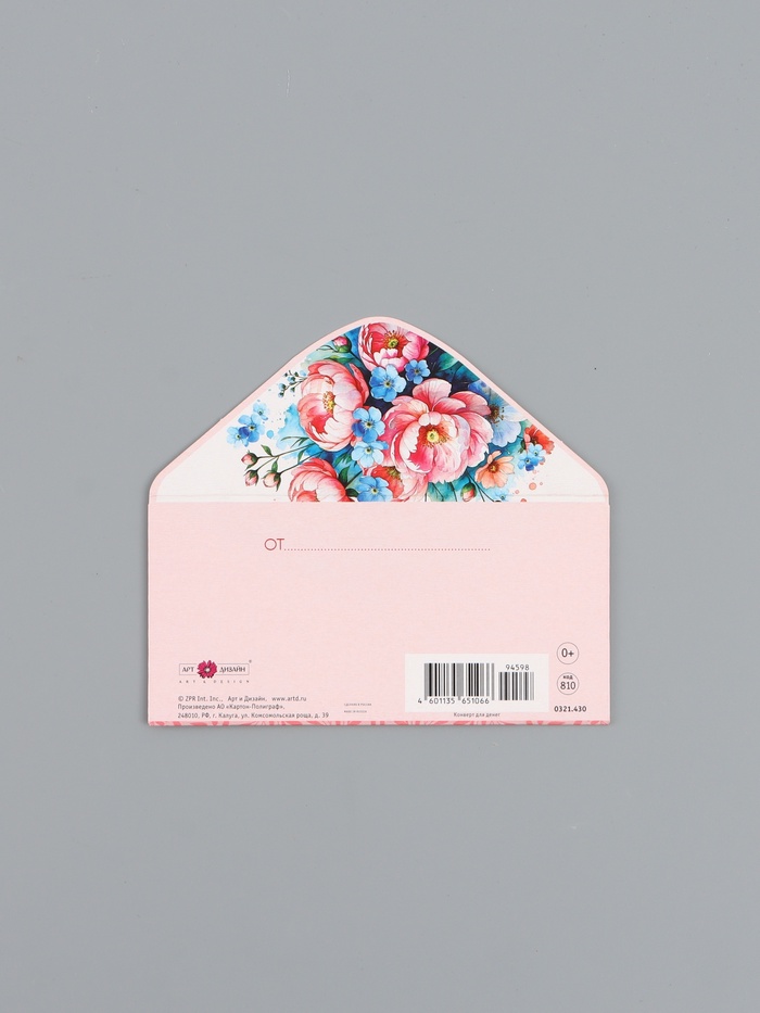 Конверт для денег «Цветы», голубой и розовый, 16,5 х 8 см — Характеристики