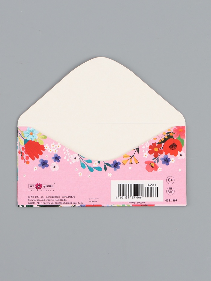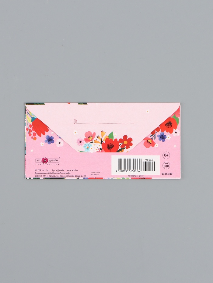 Конверт для денег «Цветы яркие», 16,5 х 8 см — Характеристики