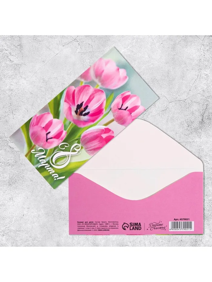 Конверт для денег «В 8 марта!», 16.5×8 см — Характеристики