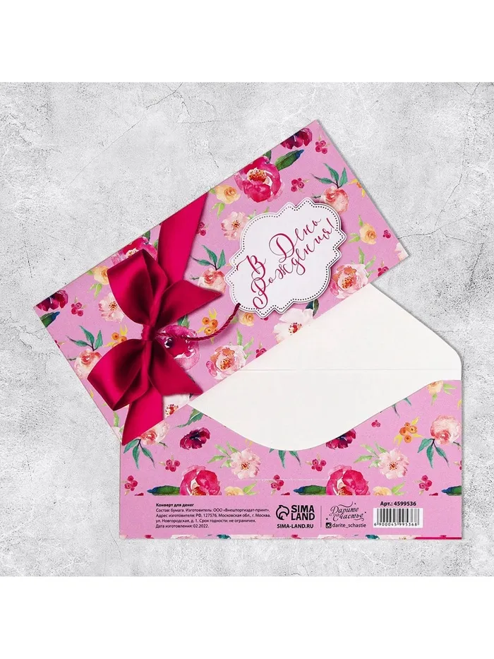 Конверт для денег «В День Рождения!», 16.5×8 см — Характеристики