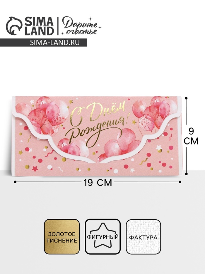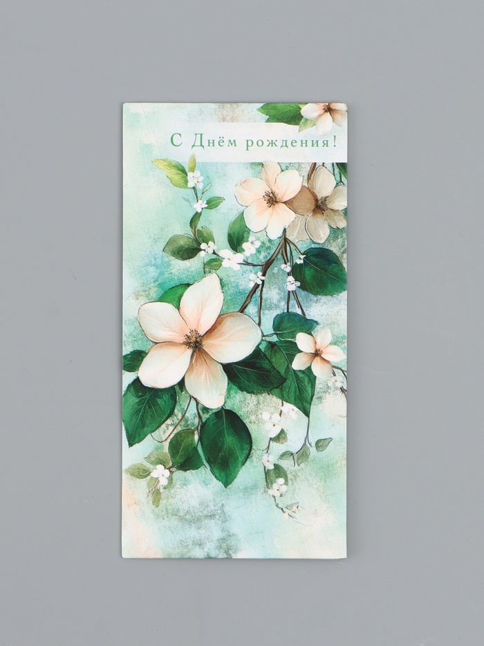 Конверт для денег «С днём рождения!», акварельный картон, тиснение, конгрев 19×9 см