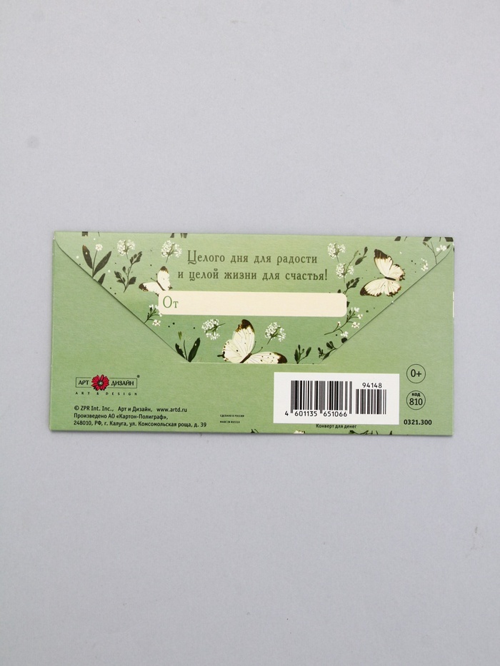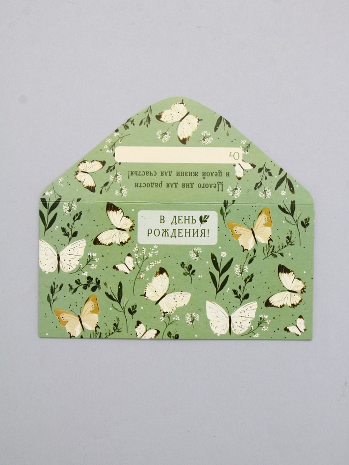 Конверт для денег «В День Рождения!», бабочки на зелёном, 16,5 х 8 см — Характеристики
