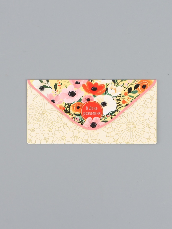 Конверт для денег «С днём рождения», яркие цветы, 16,5 х 8 см