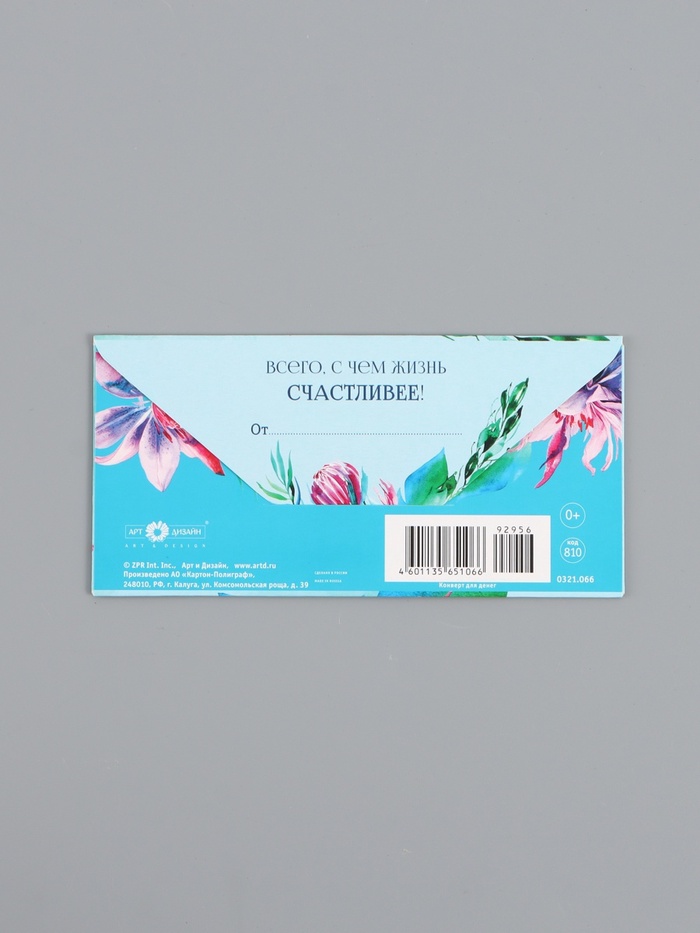 Конверт для денег «В день рождения», голубой и розовый, 16,5 х 8 см — Характеристики