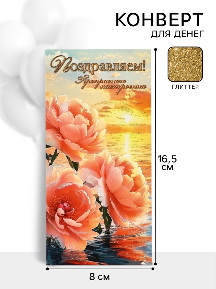 Конверт для денег «Поздравляем!»7, глиттер, 16,5 × 8 см