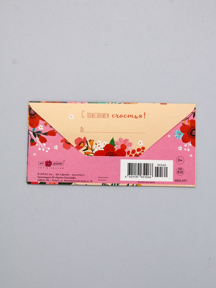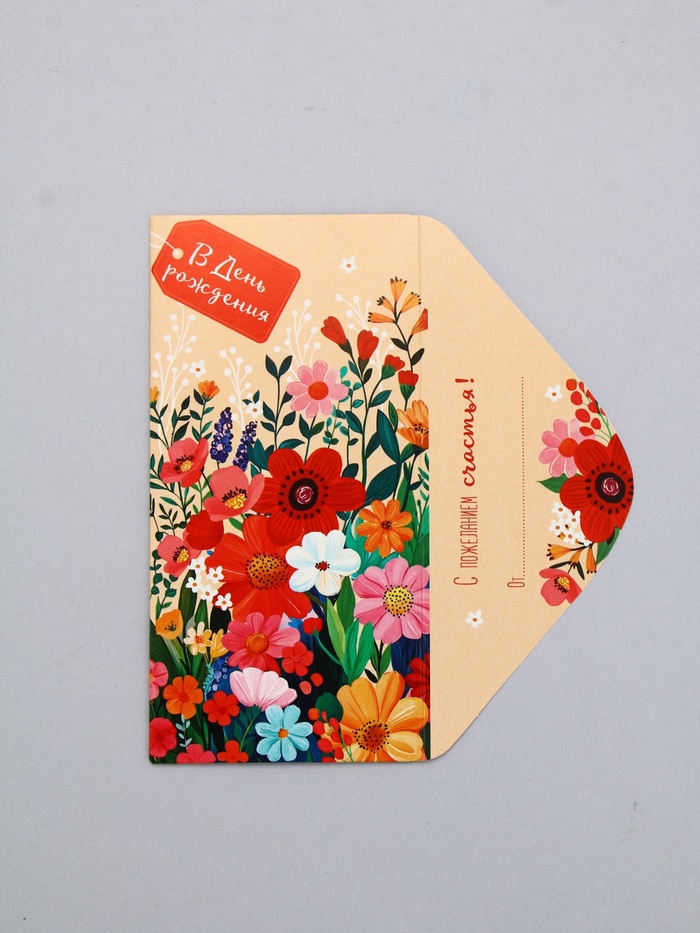 Конверт для денег «В День Рождения!», яркие цветы на светлом, 16,5 х 8 см — Характеристики