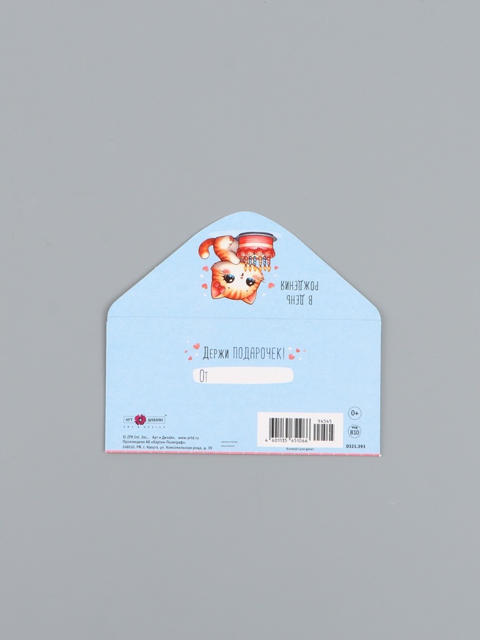 Конверт для денег «В День Рождения», кошечка, 16,5 х 8 см — Характеристики