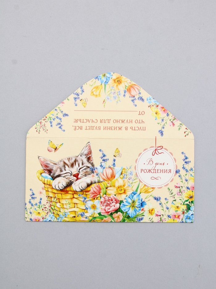 Конверт для денег «В День Рождения», котик спит, 16,5 х 8 см — Характеристики