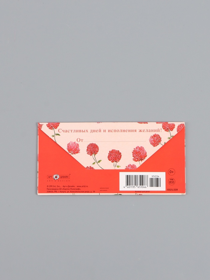 Конверт для денег «В День Рождения!», красные цветы, 16,5 х 8 см — Характеристики
