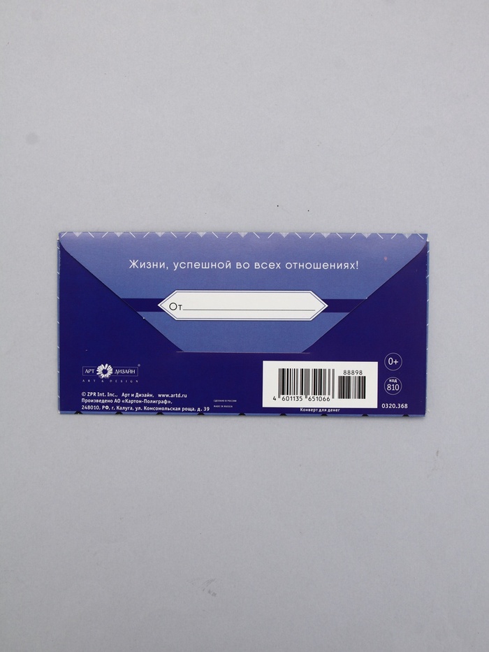 Конверт для денег «В день рождения», орнамент голубой, 16,5 х 8 см — Характеристики