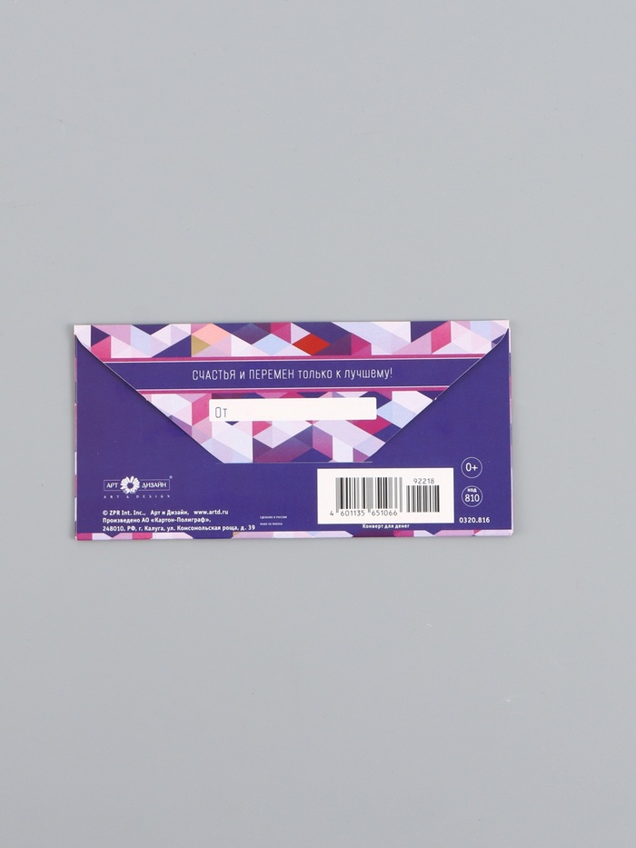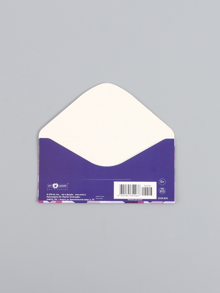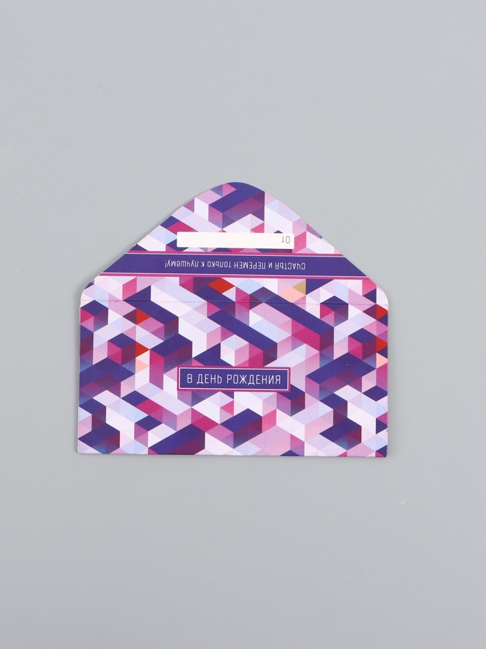 Конверт для денег «В день рождения», орнамент сиреневый, 16,5 х 8 см — Характеристики