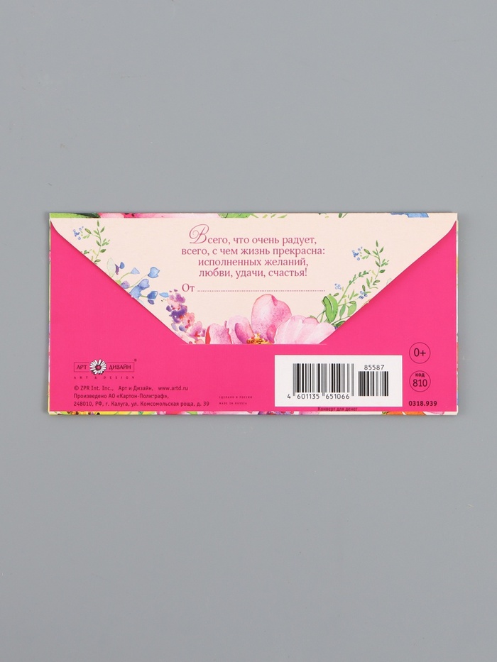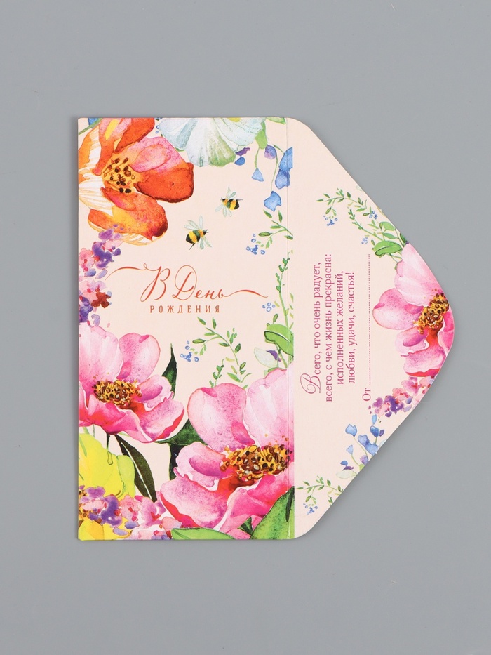 Конверт для денег «В день рождения», цветы на персиковом, 16,5 х 8 см — Характеристики