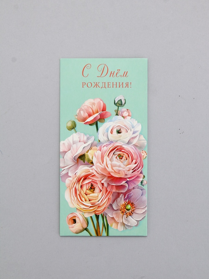 Конверт для денег «С днём рождения», ранункулюсы, 16,5 х 8 см