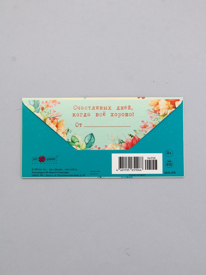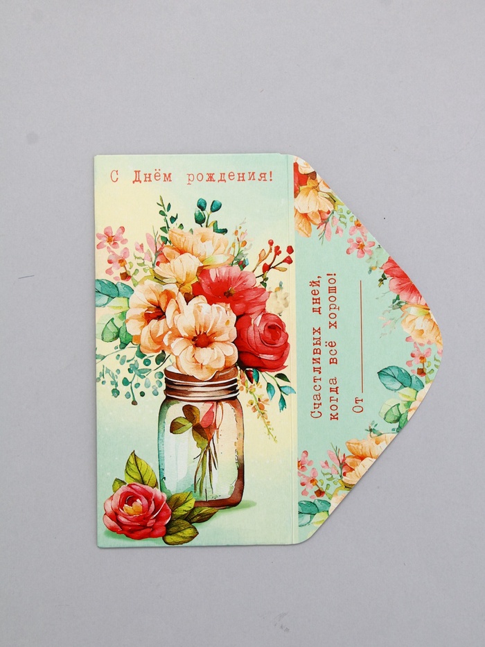 Конверт для денег «В День Рождения!», ваза с цветами, 16,5 х 8 см — Характеристики