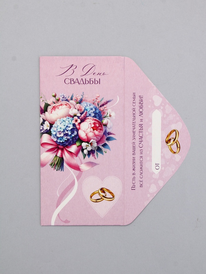 Конверт для денег «В День Свадьбы», сиреневый, 16,5 х 8 см — Характеристики