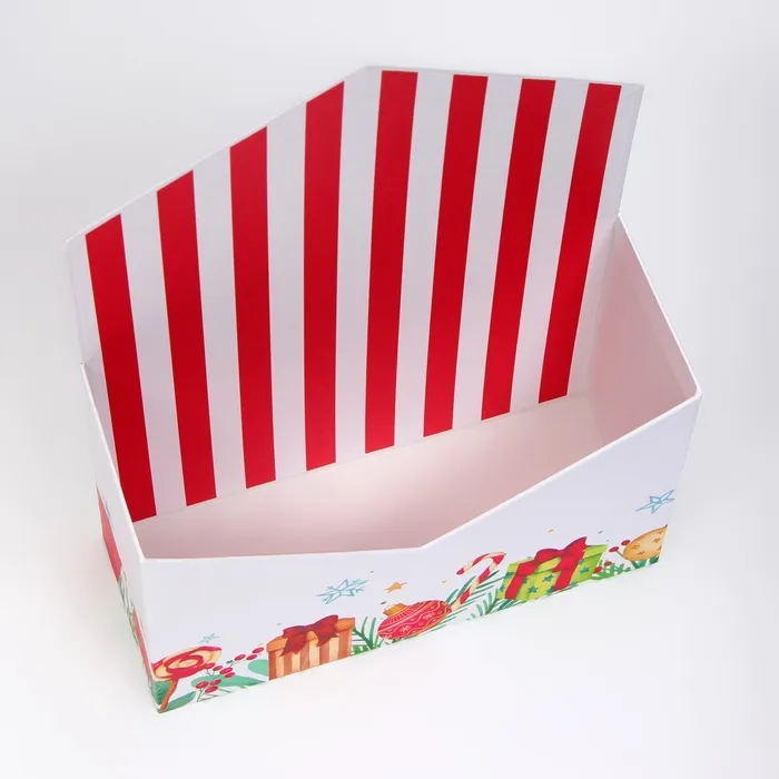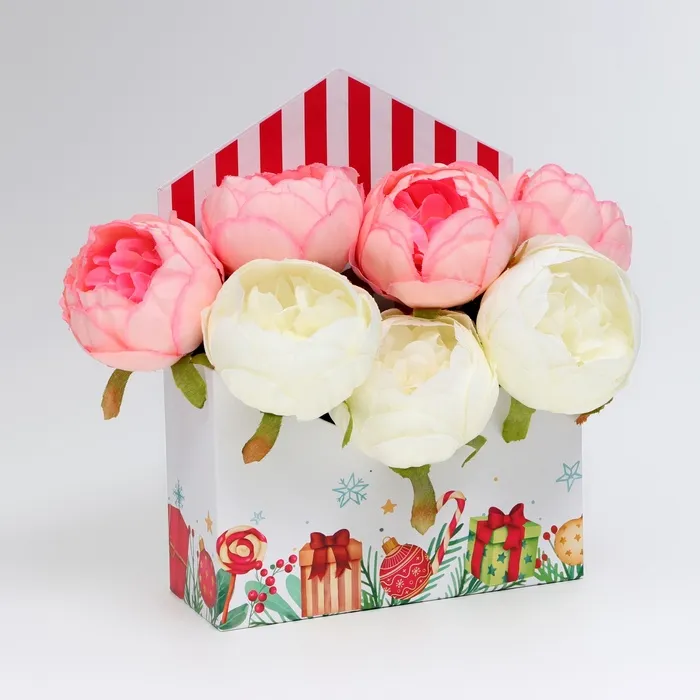 Коробка подходит для упаковки цветов, новогодних букетов, различных сладостей, конфет, шоколада, игрушек, сувениров, парфюмерии, новогодних подарков и других приятных мелочей.