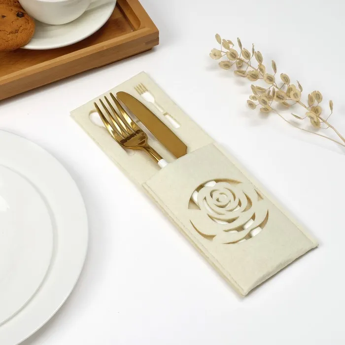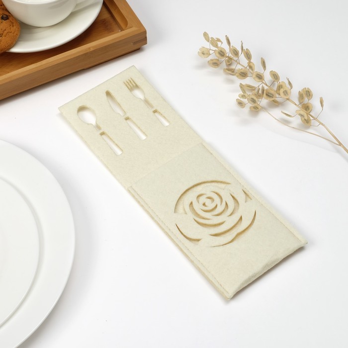Конверт для столовых приборов «Доляна. Роза», цвет молочный, 9×25 см, 100% п/э, фетр — Характеристики